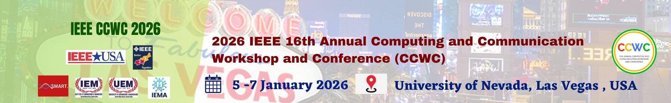 Continuing from the outstanding success of IEEE CCWC 2025, we are very proud to present IEEE CCWC 2026 which will provide an opportunity for researchers, educators, and students to discuss and exchange ideas on issues, trends, and developments in Computing and Communication. The conference aims to bring together scholars from different disciplinary backgrounds to emphasize dissemination of ongoing research in the fields of Computing and Communication. Research papers are invited describing original work in the above-mentioned fields and related technologies. The conference will include a peer-reviewed program of technical sessions. The conference committee decided to conduct this year’s CCWC as a fully physical conference, which will be held at the University of Nevada, Las Vegas, USA. This conference will also promote an intense dialogue between academia and industry to bridge the gap between academic research, industry initiatives, and governmental policies. This is fostered through panel discussions, keynotes, invited talks, and industry exhibits where academia is exposed to state-of-practice and results from trials and interoperability experiments. The industry in turn benefits from exposure to leading-edge research in networking as well as the opportunity to communicate with academic researchers regarding practical problems that require further research.